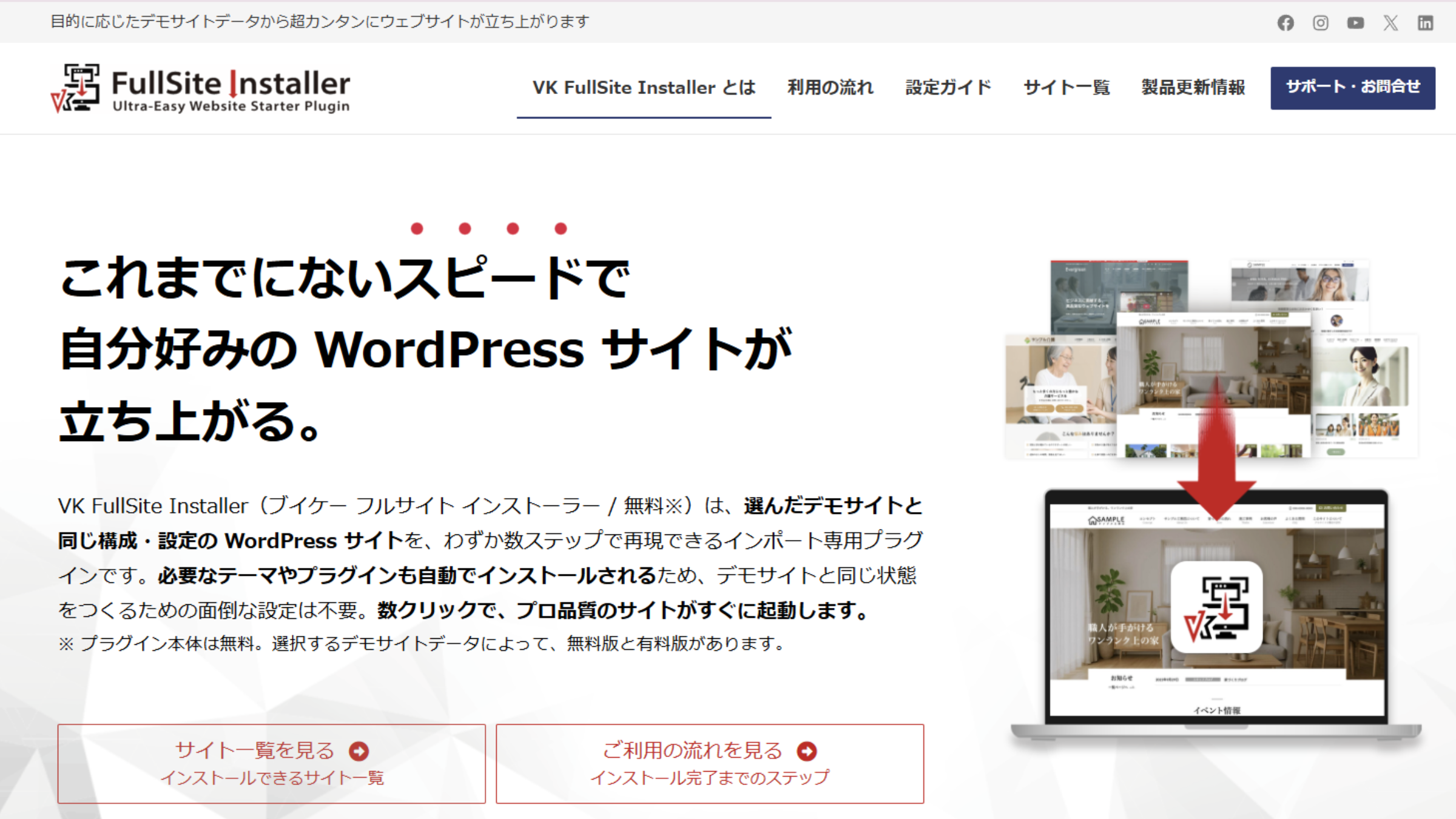 VK FullSite Installerは、基本無料で使えるWordPress用のインポート支援プラグインです。